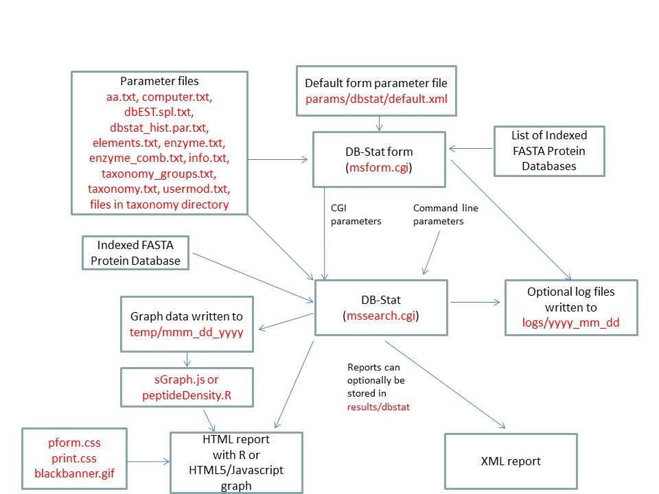 FA-Index is run using the exectuable file cgi-bin/faindex.cgi. The program can either be run from the command line or via a HTML form. The HTML form for running it is generated by the program cgi-bin/msform.cgi. The default form settings are built in. The relevant parameter files for a database summary report are info.txt, aa.txt, acclinks.txt, computer.txt, dbEST.spl.txt (dbEST databases only) and elements.txt and idxlinks.txt. The output is a HTML report. The HTML report uses the cascade stylesheet files html/pform.css and html/print.css and the image file html/images/bannerblack.gif. The faindex.cgi and msform.cgi programs can optionally write log files that are written to the directory logs/yyyy_mm_dd.